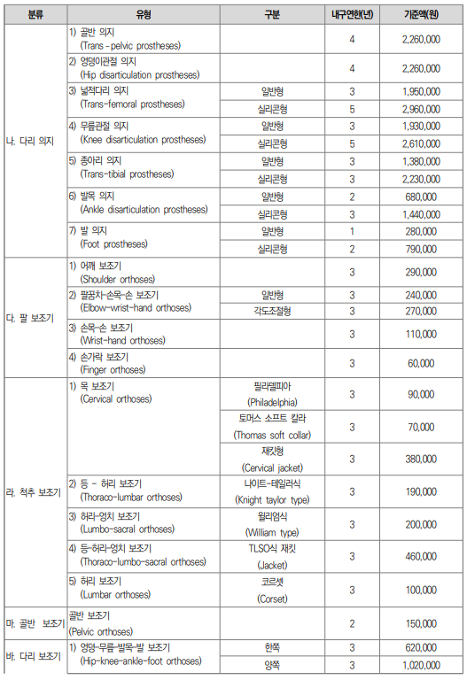 3. 지원 항목 및 금액 기준 (보청기, 이동보조기 등)