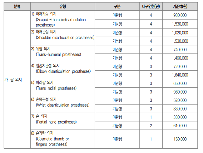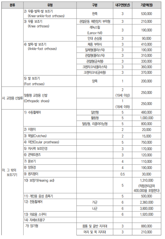 3. 지원 항목 및 금액 기준 (보청기, 이동보조기 등)